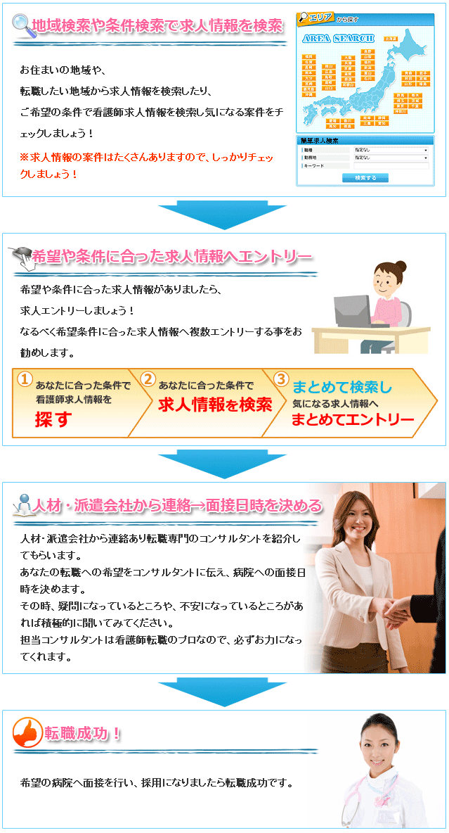 など、看護師の転職でお悩み方に対して、看護師求人まとめて検索ネットは転職活動のお手伝いをさせて頂きます。